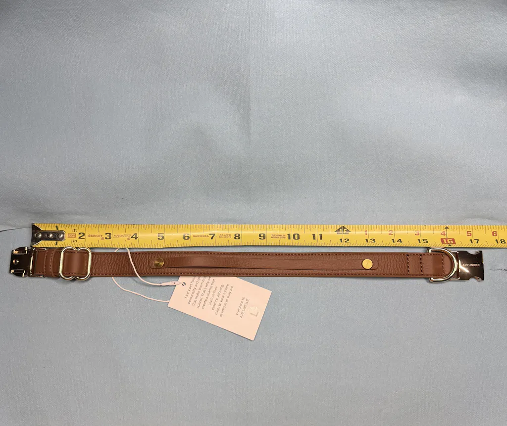 Avoid soaking or exposing the collar to saltwater to protect the gold-finished hardware.