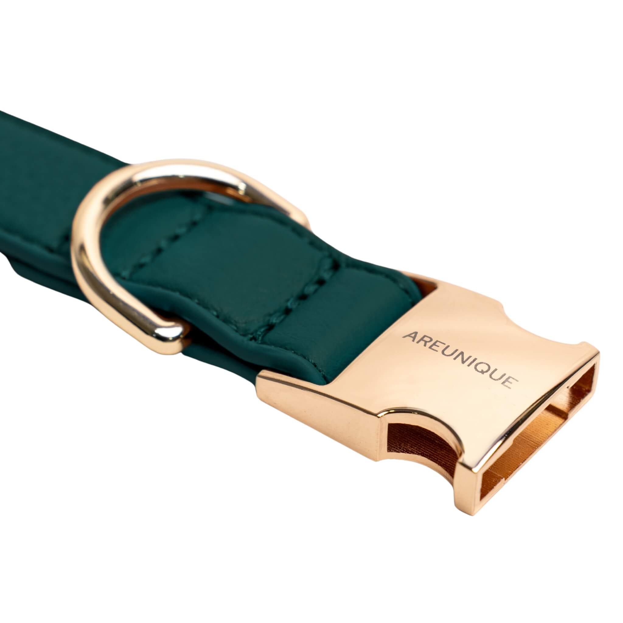 Avoid soaking or exposing the collar to saltwater to protect the gold-finished hardware.